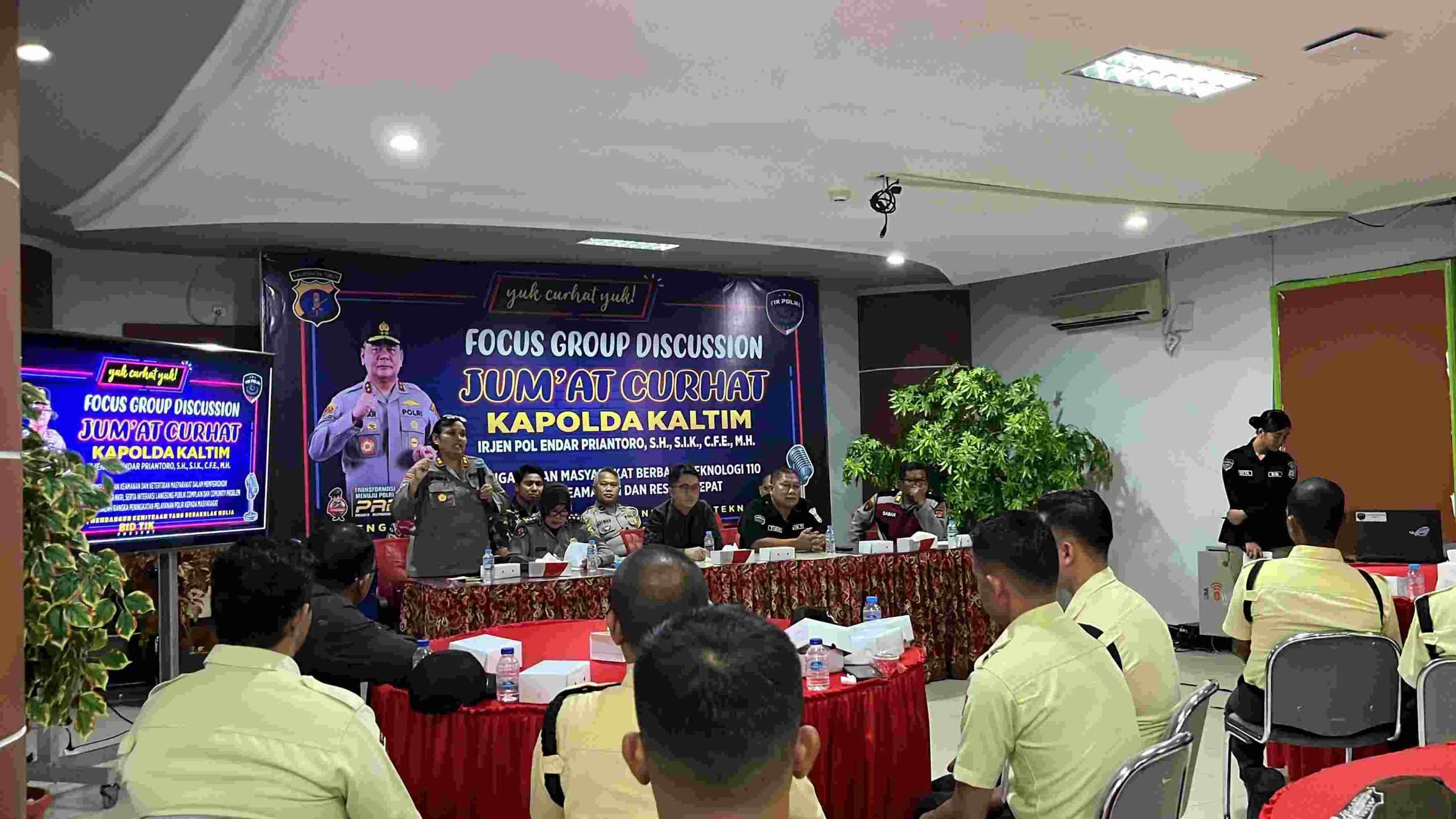 BALIKPAPAN,Swarakaltim.com.                      Polda Kalimantan Timur (Kaltim) menggelar kegiatan Jumat Curhat bertema “Pengamanan Masyarakat Berbasis Teknologi 110 Guna Keamanan dan Respon Cepat”di Kantor PT.Telkom Balikpapan, Jalan MT.Haryono, Kelurahan Damai Baru, Balikpapan pada Jumat, (7/11/’25