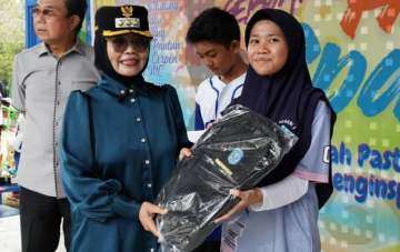 Momentum HUT SMPN I Bontang ke XLII Wali Kota Bagikan Tas Gratis