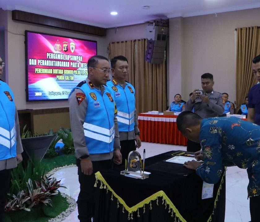 BALIKPAPAN,Swarakaltim.com. Polda Kalimantan Timur (Kaltim) menggelar kegiatan Pengambilan Sumpah dan Penandatanganan Pakta Integritas bagi peserta Penerimaan Bintara Brimob Tahun Anggaran 2026. Kegiatan ini berlangsung di Gedung Mahakam Polda Kaltim, sebagai komitmen mewujudkan proses rekrutmen Polri yang bersih, transparan, dan berintegritas pada Rabu,(19/11/’25), Acara dipimpin langsung […]
