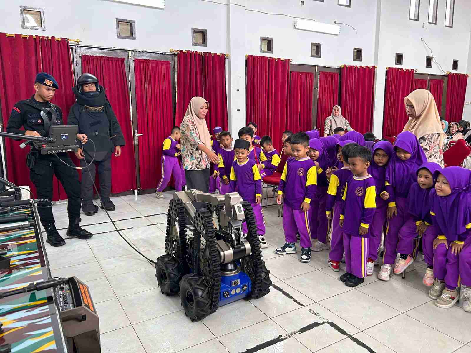 Tidak hanya itu, para siswa juga diajak melihat secara langsung kendaraan taktis (Rantis) dan berbagai peralatan khusus yang biasa digunakan dalam tugas operasional. Antusiasme anak-anak terlihat dari banyaknya pertanyaan yang mereka sampaikan kepada personel yang mendampingi.