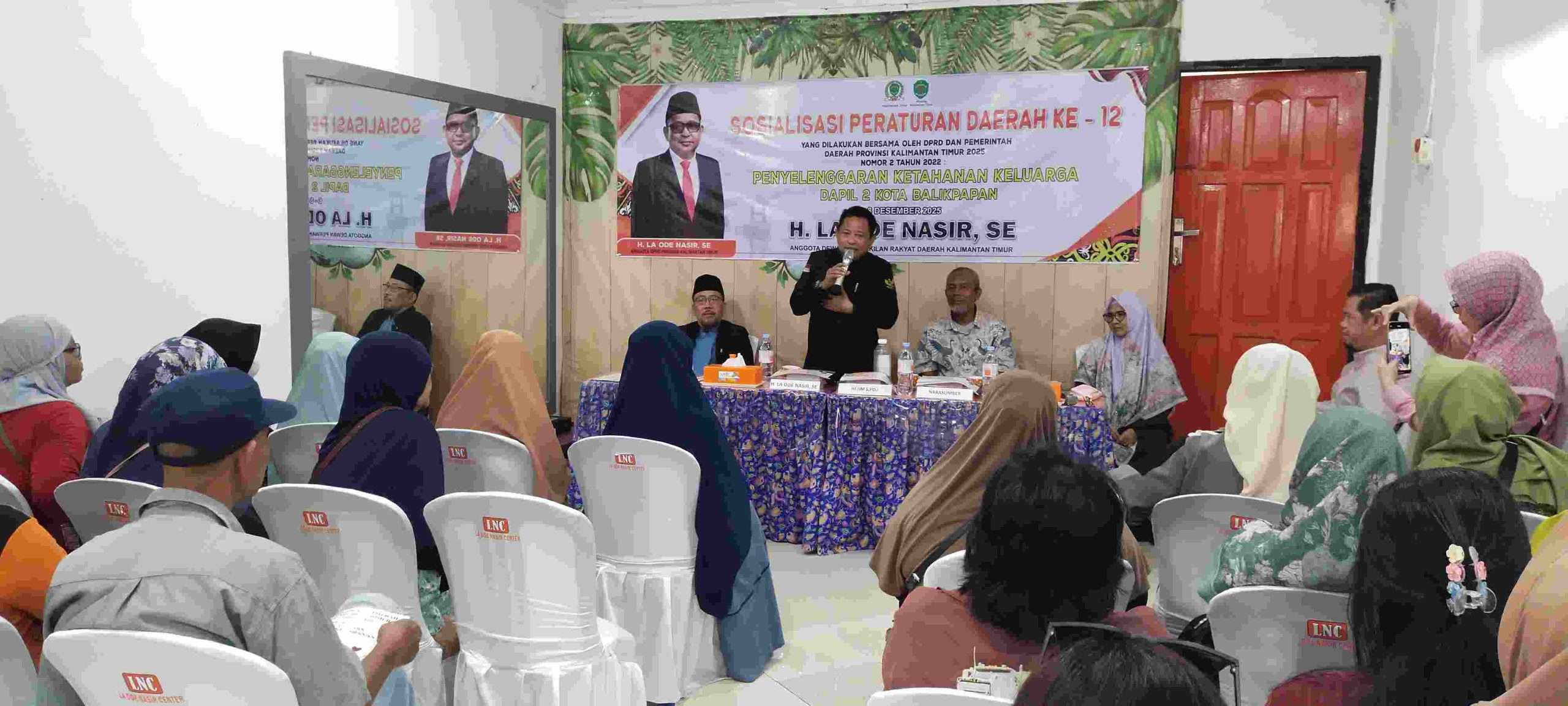BALIKPAPAN,Swarakaltim.com.                         H. La Ode Nasir,SE Anggota DPRD Provinsi Kalimantan Timur (Kaltim) Komisi I Fraksi PKS Dapil Kota Balikpapan tidak henti-hentinya melakukan sosialisasi Perda Nomor 2 Tahun 2022 Provinsi Kaltim tentang Penyelenggaraan Ketahanan Keluarga di Kantor Sekretariat Halte sedekah LNC (La Ode Nasir Center) Jl. dr. Sutomo Kelurahan Karang Rejo Kelurahan, Kecamatan Balikpapan Tengah Provinsi Kaltim Minggu,(6/12/’25) siang.