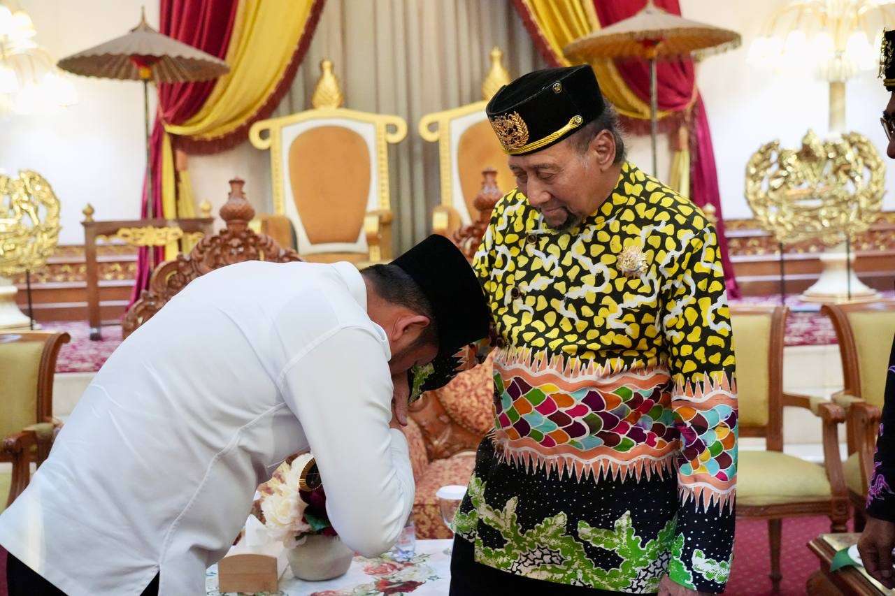 Sultan Aji Muhammad Arifin dan kerabat Kesultanan menyambut hangat kehadiran Gubernur Harum yang hadir bersama istri, Hj Sarifah Suraidah Harum.