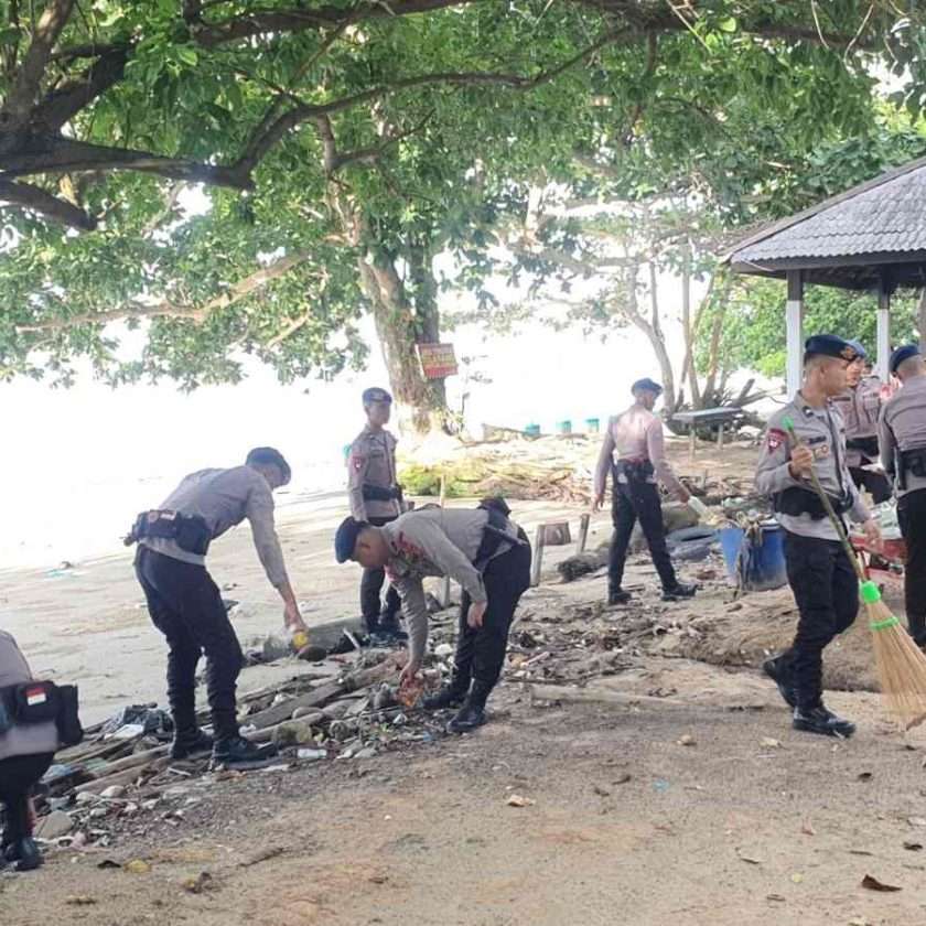 Dukung Program Pemerintah, Batalyon A Pelopor Brimob Kaltim Gelar Aksi Bersih Pantai di Stalkuda