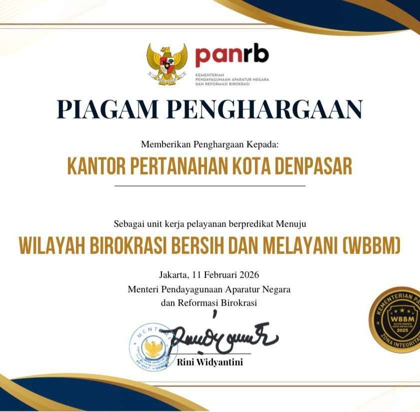 Bukti Pelayanan Publik yang Bersih dan Akuntabel, Kantah Kota Denpasar Raih Predikat WBBM