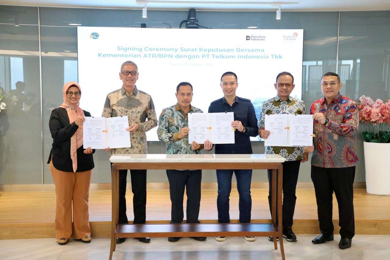 Jakarta, Swarakaltim.com – Kementerian Agraria dan Tata Ruang/Badan Pertanahan Nasional (ATR/BPN) bersama PT Telkom Indonesia membentuk Satgas Akselerasi Legalisasi dan Penyelesaian Kasus Aset Tanah Telkom 2026. Pembentukan Satgas disahkan melalui penandatanganan Surat Keputusan Bersama dengan disaksikan oleh Wakil Menteri (Wamen) ATR/Wakil Kepala (Waka) BPN, Ossy Dermawan dan Direktur Utama PT Telkom Indonesia, Dian Siswarini pada Jumat (20/02/2026), di Gedung Telkom Hub, Jakarta.