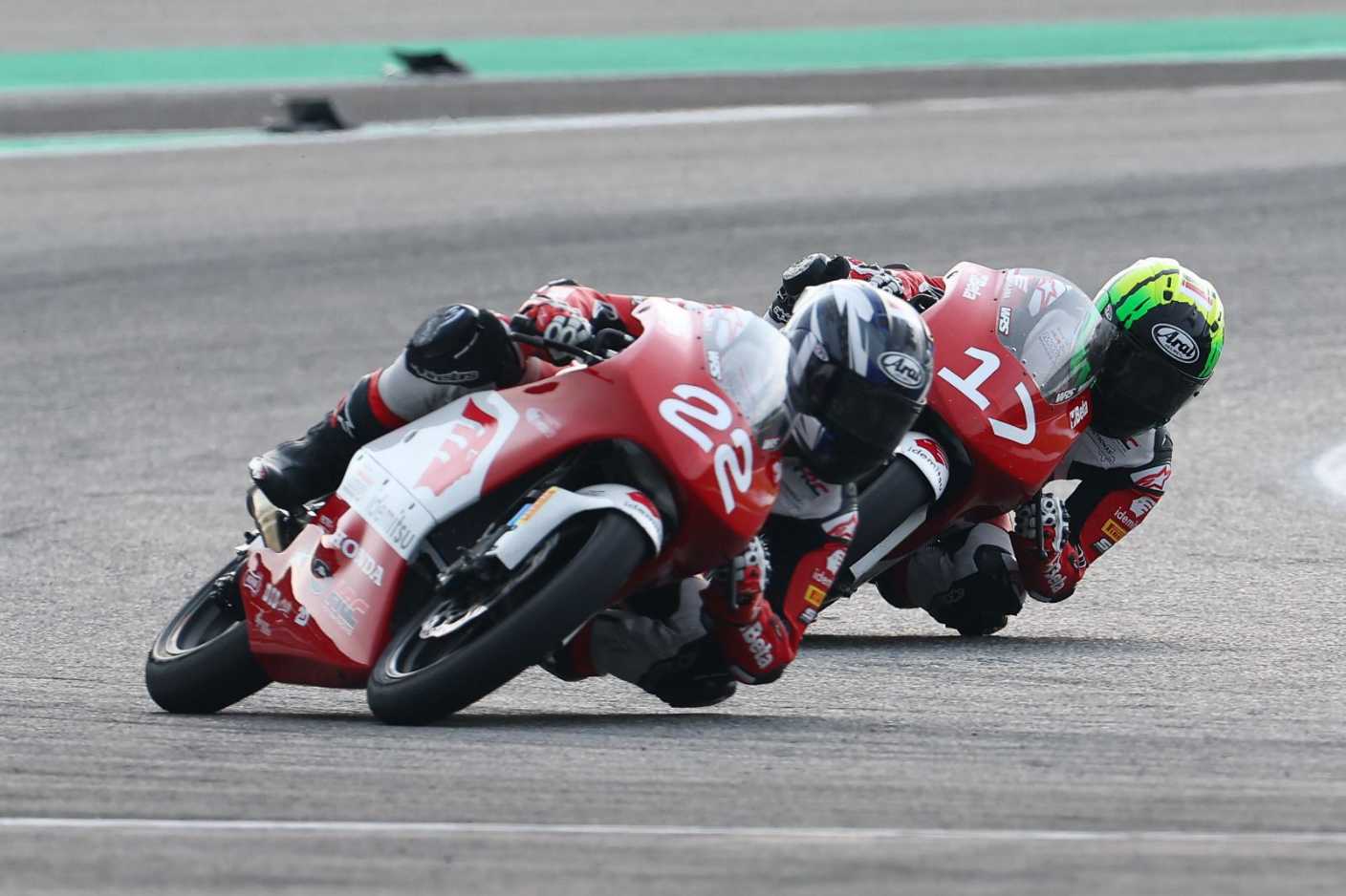 Keduanya terus memacu NSF250R, berusaha menyelinap di antara pebalap rivalnya demi posisi depan.