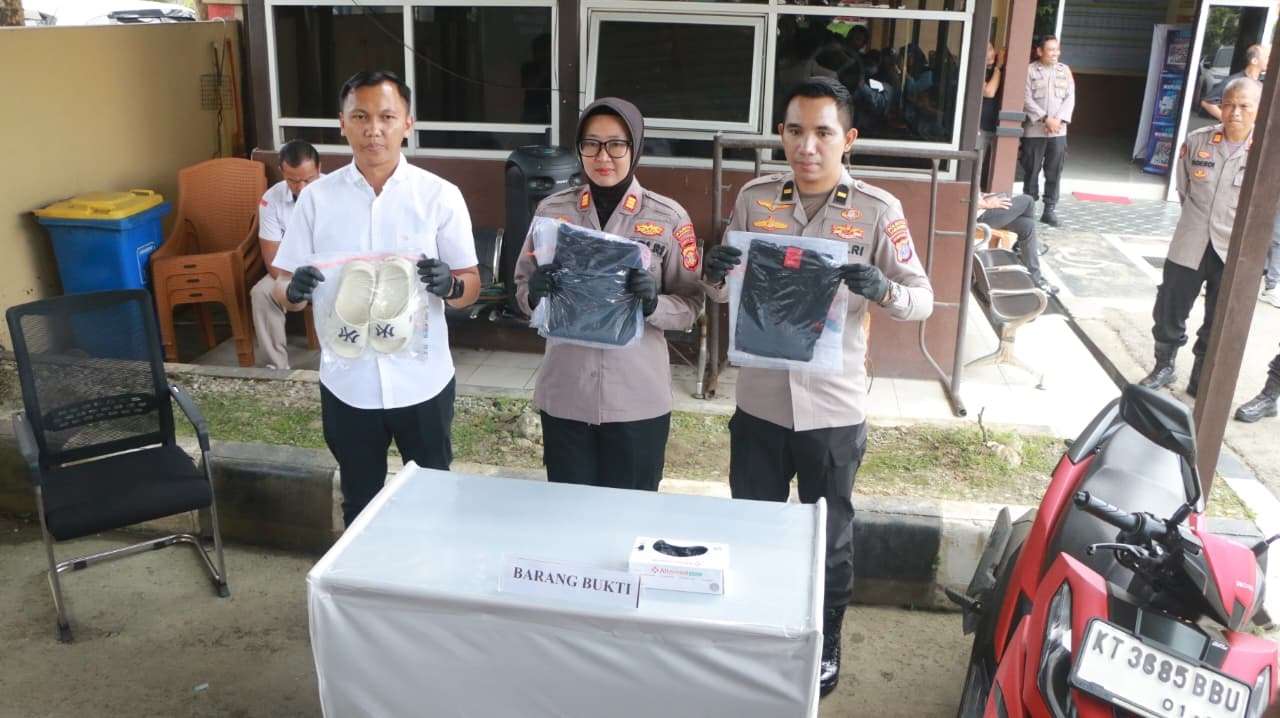 Selain mengamankan tersangka, petugas turut menyita sejumlah barang bukti berupa satu unit sepeda motor Honda Vario warna merah KT 3685 BBU, satu helai kaos warna hitam, satu celana panjang warna hitam, serta sepasang sandal warna putih yang digunakan tersangka saat kejadian.