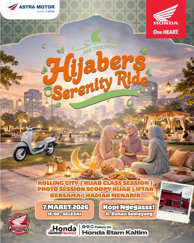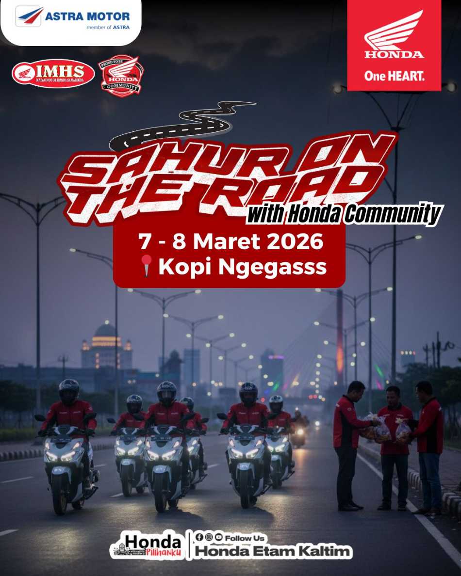 Ragam kegiatan seperti Sahur On The Road (SOTR) with Honda Community, Hijabers Serenity Ride, Scoopy Loopy, Ngabuburut x Beyblade hingga Berbagi 1000 Takjil siap menemani masyarakat kota Samarinda bersama Honda Community, sembari menunggu waktu sahur dan berbuka yang akan dilaksanakan pada Sabtu dan Minggu (07-08/03) mendatang.
