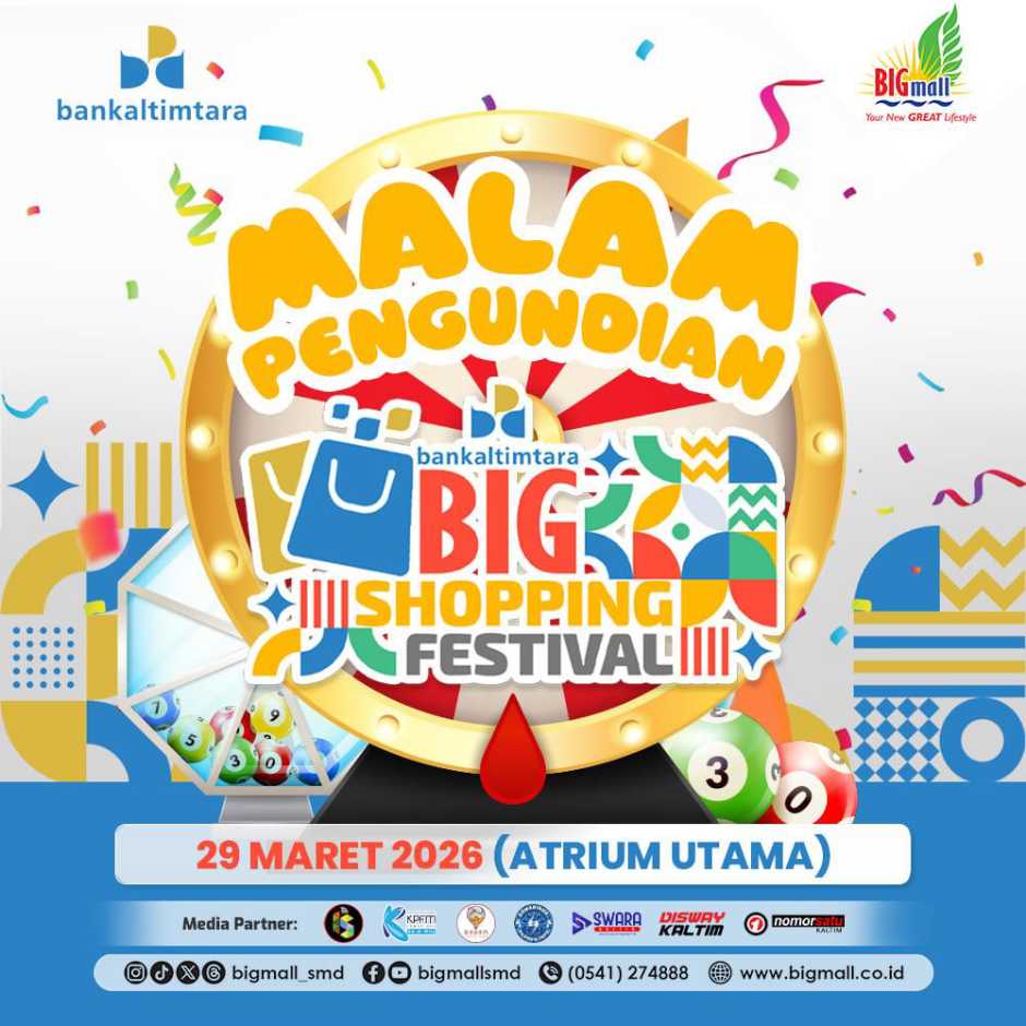 SAMARINDA, Swarakaltim.com – Puncak program belanja berhadiah Bankaltimtara BIG Shopping Festival akan digelar pada 29 Maret 2026 melalui malam pengundian yang berlangsung di atrium utama BIG Mall Samarinda.