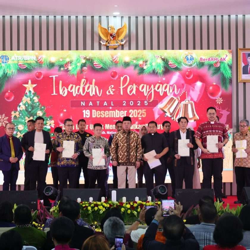 Jakarta, Swarakaltim.com – Dalam Perayaan Natal Kementerian Agraria dan Tata Ruang/Badan Pertanahan Nasional (ATR/BPN) Tahun 2025, Menteri ATR/Kepala BPN, Nusron Wahid, menyerahkan 14 Sertipikat untuk Rumah Ibadah dan Yayasan Kristiani kepada delapan penerima. Pendeta Maruli Sinaga dari Gereja Kristen Protestan Simalungun (GKPS) sebagai salah satu penerima menyatakan, dirinya merasakan betul dukungan dan kemudahan proses […]